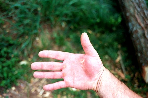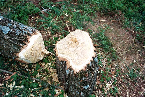 The tree was felled by a thousand tiny cuts of my machete; I was left with some nasty blisters on my hands, and a satisfied smile on my face.