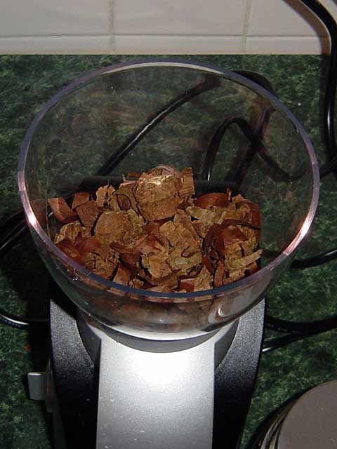 The first step was to cut up the cigar into little sections, so that I could feed it into the burr ginder. I could hear the poor cigar scream out in pain as it was chopped up into little pieces and fed into the grinder.