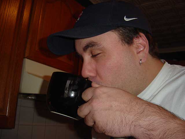 The taste... woah! Incredibly strong, and you could feel it tickling -- no, more like attacking -- your throat as it went down. WOAH! Yikes. There was no way I could drink this stuff raw. That's okay though, my plan was only half-complete. I had yet to create my frankenstein, the utterly wrong mixing of foo-foo Italian cappuccino with ground cigar tobacco.