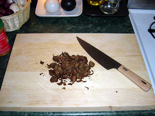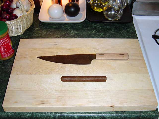 The first step was picking the poor cigar that would be chosen to make the sacrifice of being cut up, and then ground into little bits for my tobaccoccino. I chose a Cuban Monte Cristo from my humidor, and considered that if Castro had any idea what I was doing with his poor cigar, he'd have me executed on the spot, just on principle.