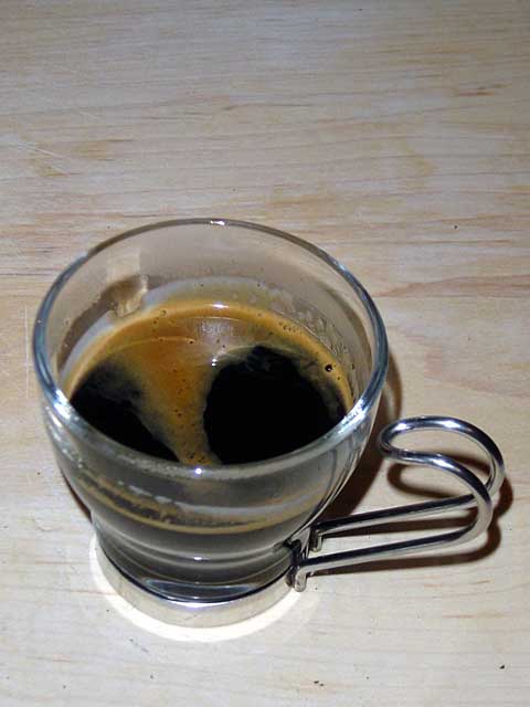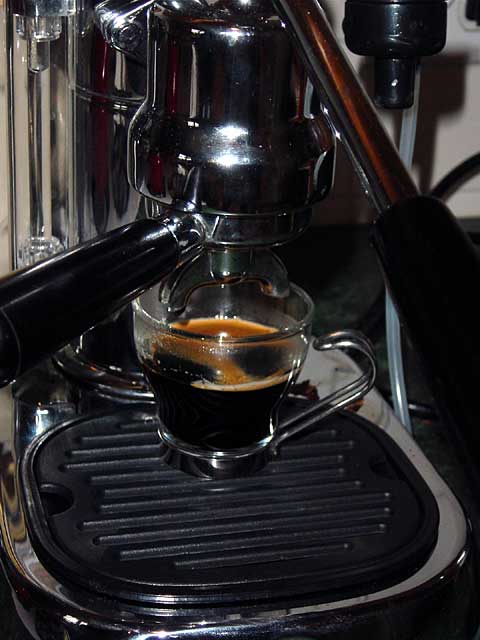 The moment of truth arrived with all the delicacy of a freight train. I lifted the level on the espresso machine, and brought it down like a guillotine, and the first blood from my concoction oozed out of the machine. It was black as night, and I half expected it to eat through the glass as it poured into it like syrup from hell.